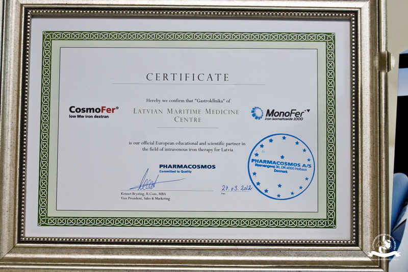 25.05.2012 plkst. 13:00 uz Latvijas Jūras Medicīnas centra „Gastroklīnikas" bāzes (Patversmes iela 23, Rīga) sadarbībā ar SIA „Orivas" (Pharmacosmos oficiālais pārstāvis) ir atklāts Baltijas valstīs unikālais specializētais dzelzs deficīta anēmijas centrs.